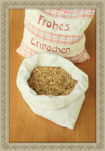 Die Gestaltung der Kissen lässt viel Raum für kreative Designs. Vom einfachen, praktischen Kissen bis hin zur Ausarbeitung als Kuscheltier, sind der Fantasie keine Grenzen gesetzt. Ich bevorzuge antike Stoffe nicht nur wegen der Designs, sondern auch weil sie stets aus Naturmaterialen gefertigt wurden und sehr gut waschbar sind. Das Innenkissen muss stets fest und gut vernäht sein, damit der Inhalt nicht austreten kann. Die Füllung des Innenkissens tausche ich in jedem Jahr gegen eine neue aus. Die alte kann umweltfreundlich im Kompost entsorgt werden.