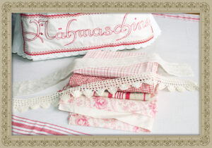 Der Wäscheschrank war früher der Stolz der Frau. Die Weißwäsche gehörte zur Aussteuer, entsprechend sorgfältig wurde sie gepflegt und immer sauber gebügelt aufbewahrt. Oftmals waren sie mit Monogrammen versehen und handgestickten Bändern umwickelt. Die Bettwäsche musste ein Leben lang halten – und sie tut es noch darüber hinaus.