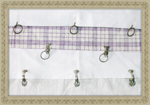 Der Vorhang kann mit Gardinenklammern an der Stange befestigt werden. Sehr gut eignen sich auch Bettdeckenüberzüge mit Knopfverschluss. Die Vorhangringe können dann in die bereits vorhandenen Knopflöcher eingehängt werden.