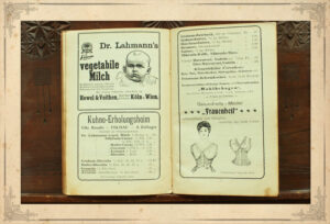 Selbst der recht bekannte Arzt Dr. Johann Heinrich Lahmann bewarb seine vegetabile Milch in diesem Buch.