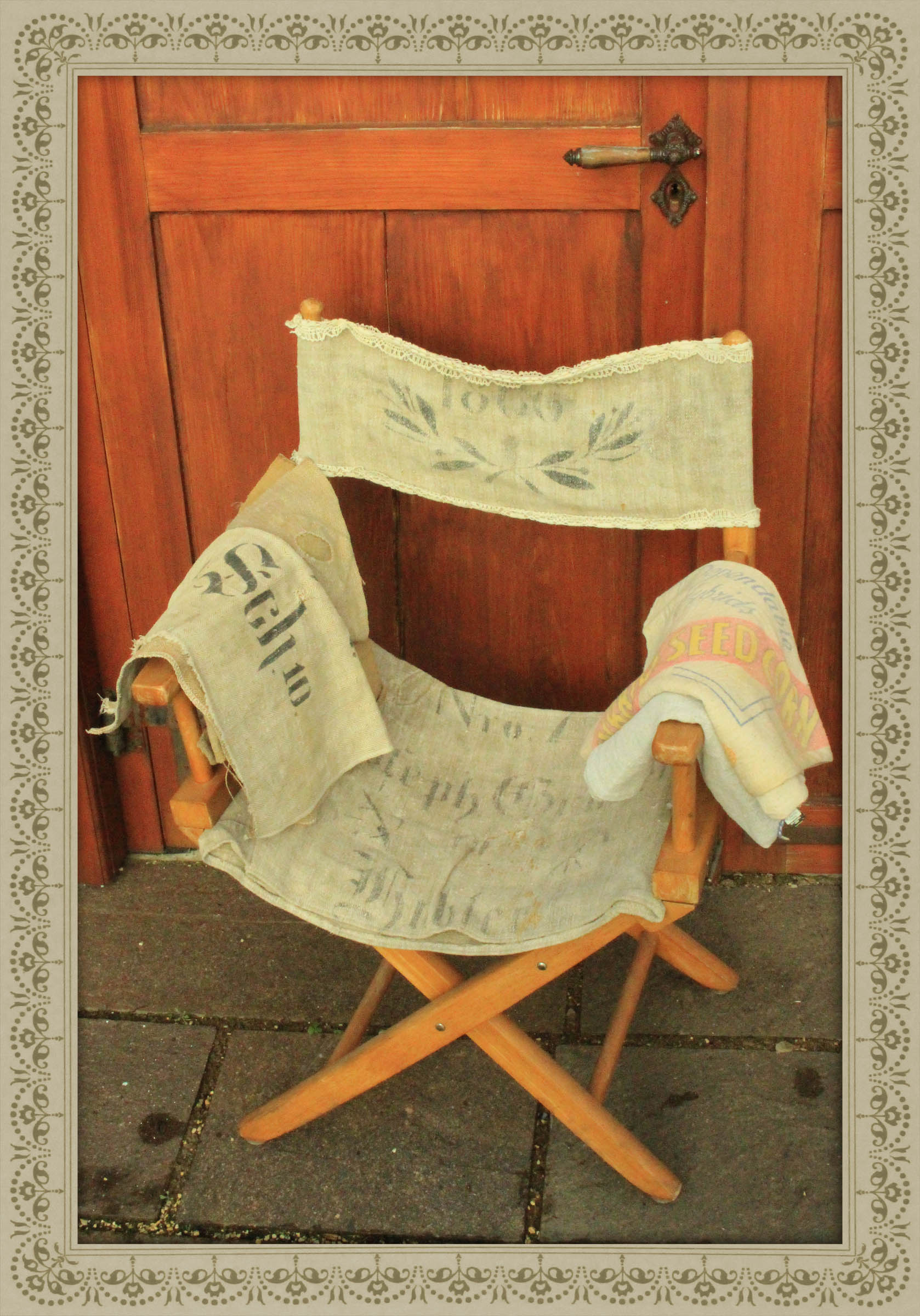 Bei Flohmarktbesuchen gehe ich niemals achtlos an einen alten Sack vorbei. Antike Getreidesäcke sind zwar oft schadhaft, was ihnen jedoch einen ganz besonderen Charme verleiht. Fast immer ist ein Aufdruck mit dem Namen des ehemaligen Besitzers und die Jahreszahl drauf. Die zeigen, dass die Säcke bereits in der Mitte des 19. Jahrhunderts gefertigt wurden. Ein Gebrauchsgegenstand, der nach 150 Jahren immer noch funktionstüchtig ist! Diese unverwüstlichen alten Säcke können zum Beispiel zu Sitzkissen, Vorhänge und Taschen verarbeitet werden. Außerdem sind sie ein hervorragender Bezugsstoff für Möbel.