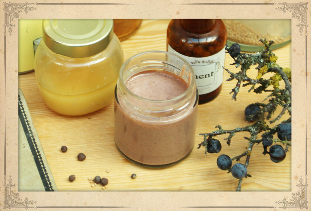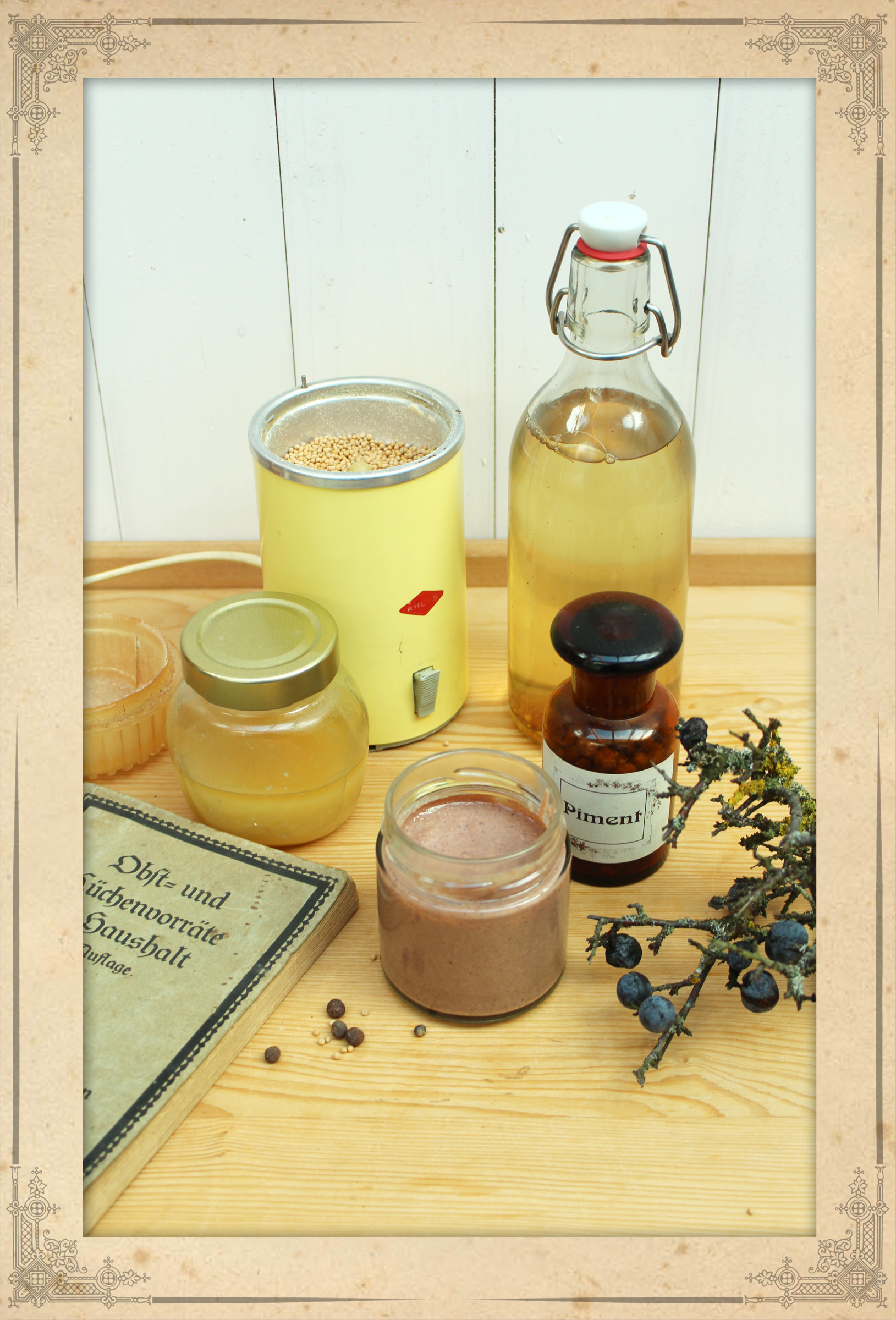 Dieses Rezept für Schlehensenf habe ich im antiken Kochbuch „Obst- und Küchenvorräte im Haushalt“ gefunden. Die Geschmacksnote des Senfes ist herb und würzig zugleich mit einer feinen fruchtigen Note. Das Geschmackserlebnis wird durch die außergewöhnlich schöne Farbe abgerundet.