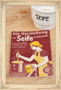 „Die Herstellung von Seife im Haushalt: Eine gründliche Anleitung“ von Josef Oswald. Erschienen 1941 im Verlag Hachmeister & Thal in Leipzig unter der Reihe „Lehrmeister-Bücherei“.