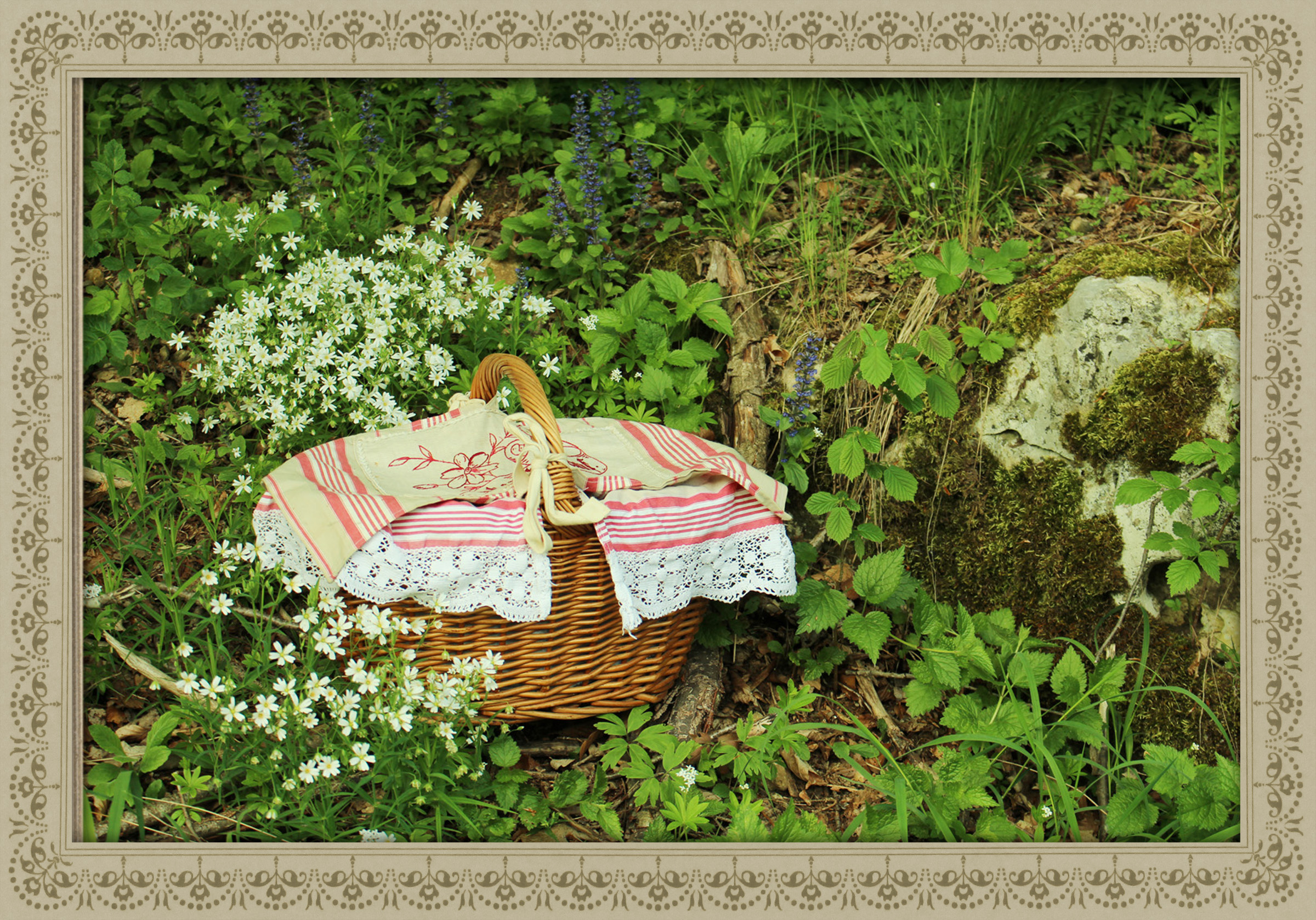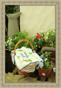 Sorgsam bestickte Wäschetücher durften einstmals in keinem Haushalt fehlen. Diese deckten die frische Wäsche im Korb ab bis sie gebügelt, gefaltet und im Schrank verstaut wurden. Ich verwende Wäschetücher gerne mit passenden Stoffen, um die Weidenkörbe auszukleiden.
