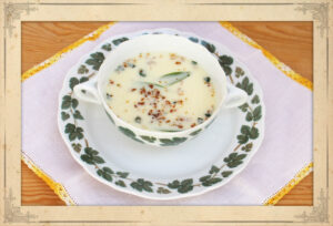 Dieses Rezept habe ich im „Kochbuch von heute“ gefunden. Das antike Kochbuch von 1925 stellt „Rezepte für den sparsamen Feinschmecker“ vor und setzt selbst einfache Gerichte raffiniert in Szene. Das Buch wurde nach dem 1. Weltkrieg verfasst, während einer Zeit, in der Lebensmittel eher knapp waren. Umso sorgsamer gingen die Menschen mit den kargen Ressourcen um, nichts wurde verschwendet. Vor allem altes Brot wurde einfallsreich zu schmackhaften Gerichten verarbeitet.