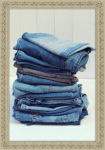 Für diese Topflappen habe ich Reste von Jeans verwendet und diese mit Stoffstücken aus einem ausgedienten Musterbuch ergänzt.