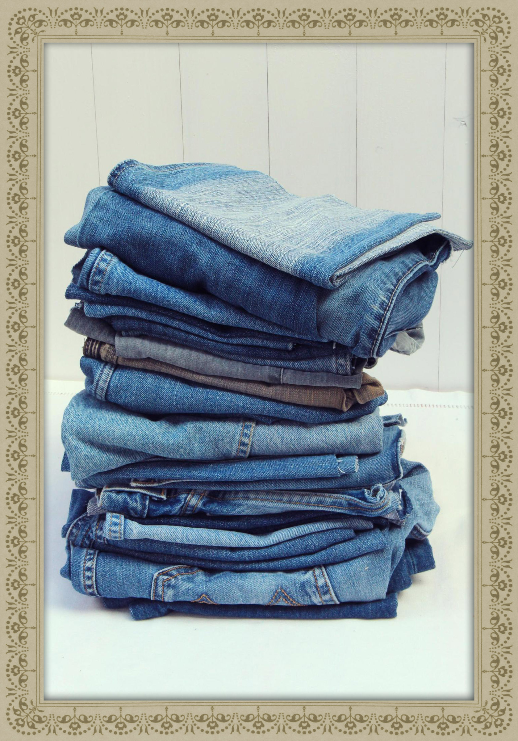 2 gleichgroße Stoffstücke in der gewünschten Größe aus der Jeans zuschneiden.